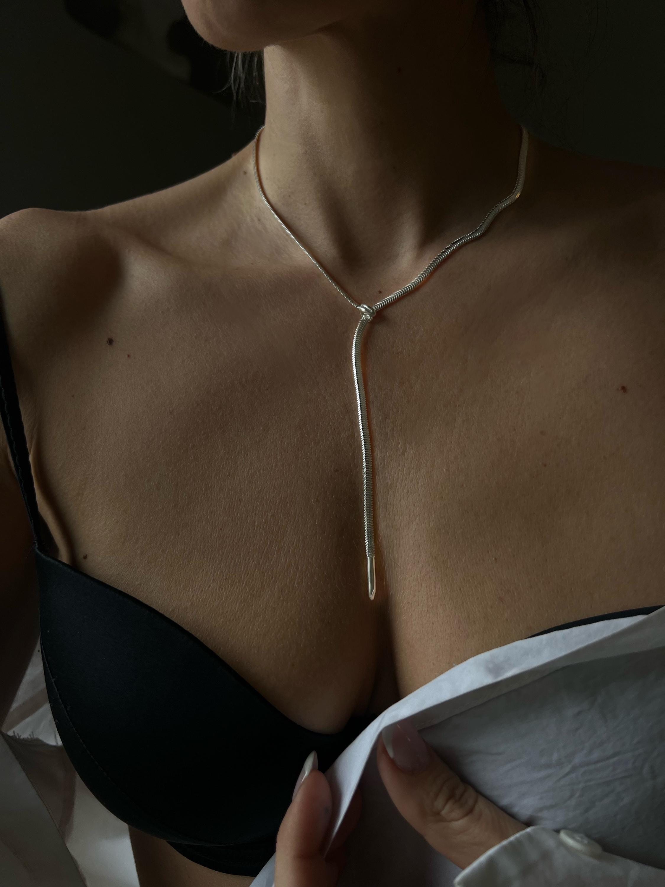 Snake necklace of solid sterling silver 925 . An elegant snake chain adorned with snake’s head and tale . A unique piece of jewelry follow the curves of the body with smoothy shine .