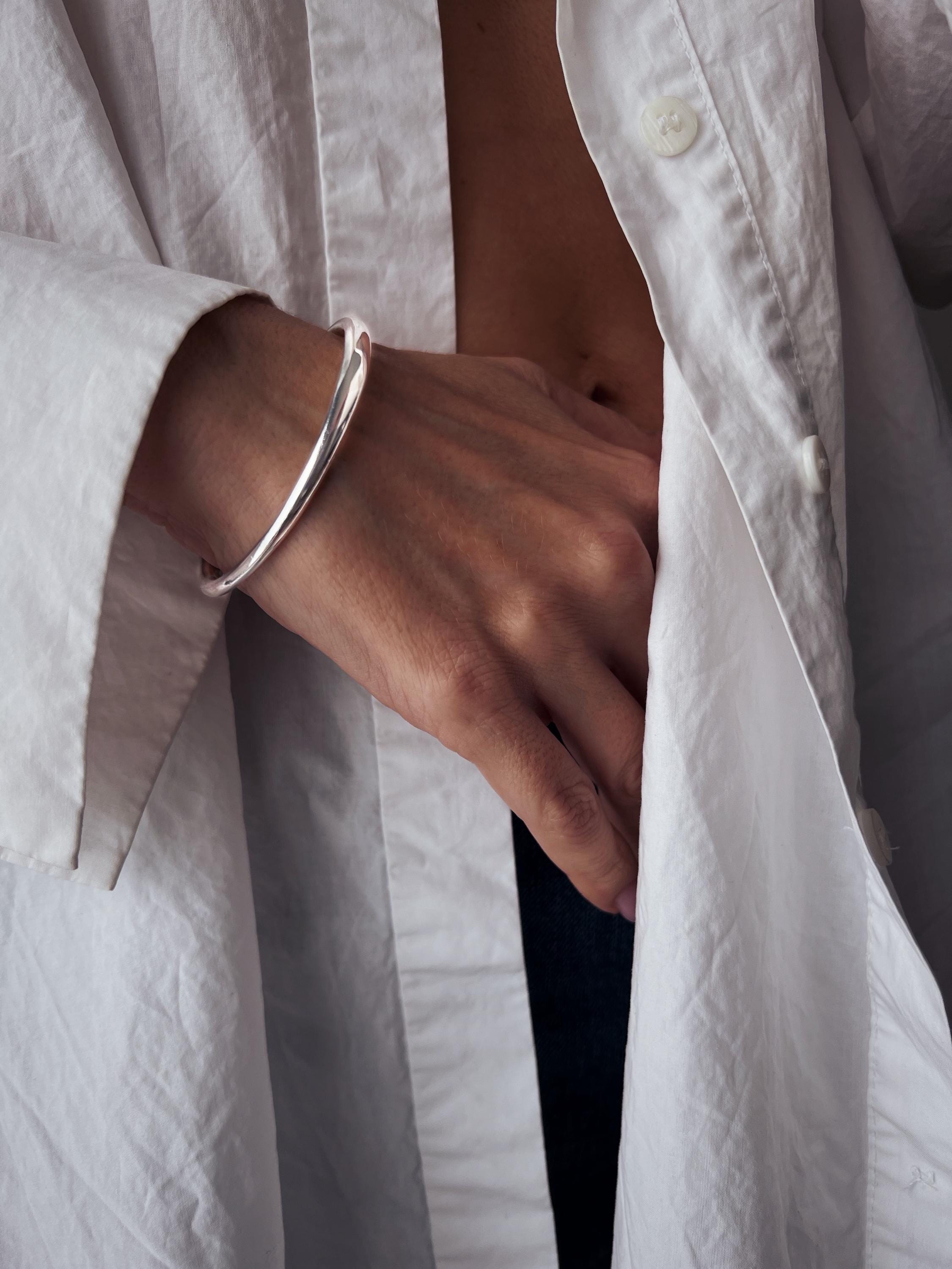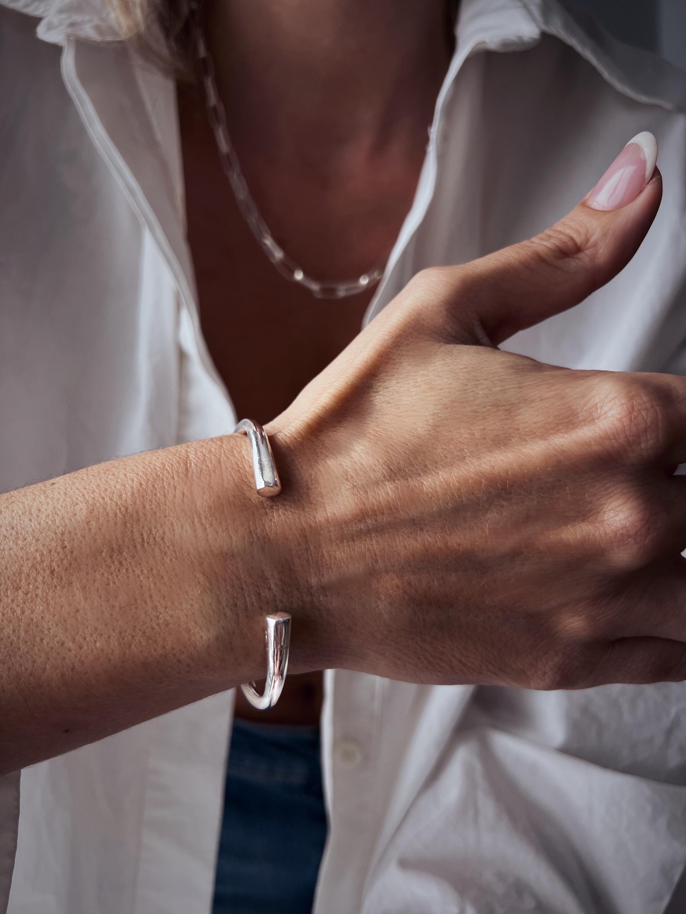 It’s a simple a versatile cuff , looks beautiful alone or stacked two together or combined with other cuffs .